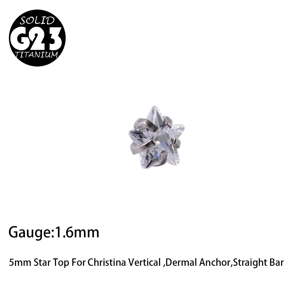 1PC G23 Titanium Christina Vertical Hood Piercings CZ Gem Dermal Anchor Crystal Flower Straight Barbell Jewelry Piercing 1.6mm