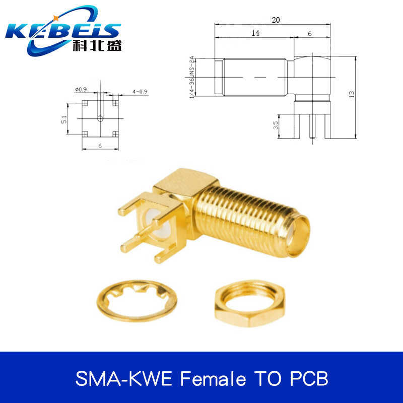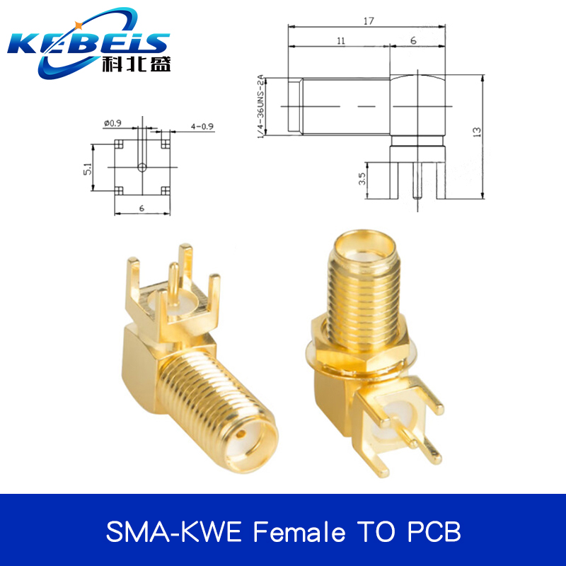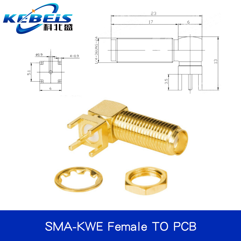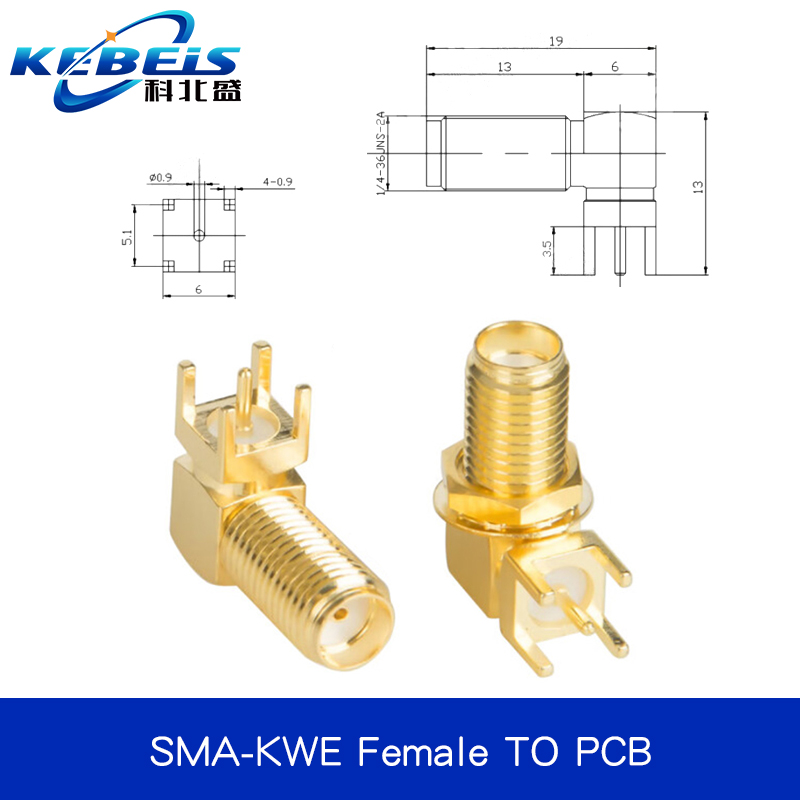 2Pcs SMA SMA-KE/KWE/KHD Female Jack Male Plug Adapter Solder Edge PCB Straight Right angle Mount RF Copper Connector Plug Socket