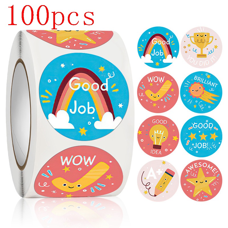 50-500pcs round GOOD JOB 8 designs rainbow star Scrapbooking accessories aesthetic stickers kawaii teacher child reward