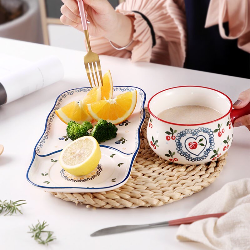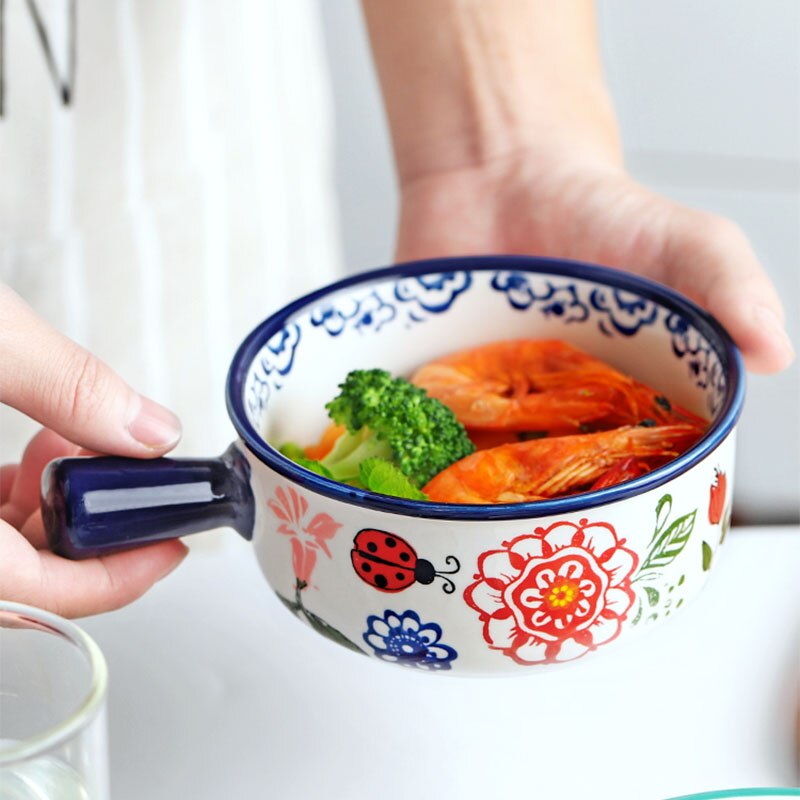 Ceramic Bowl with Handle Glaze Baking Plates French Onion Soup Bowl Roasting Lasagna Pan Round Bakeware
