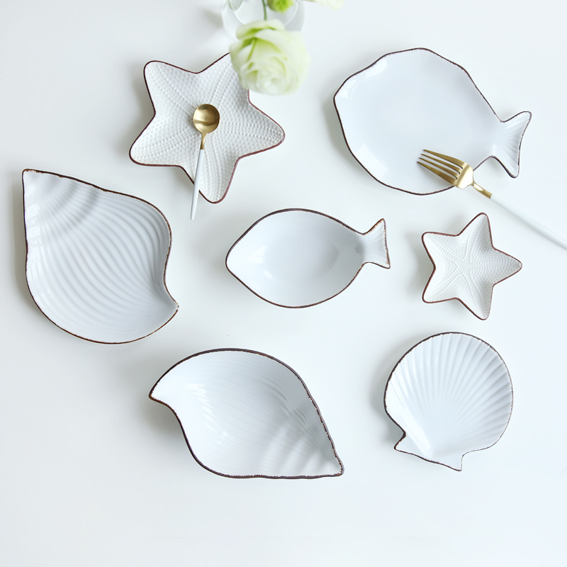 Ceramic Ocean Style Plate Whale Fish Dish Shell Starfish Trumpet Shell Bowl Blue White Porcelain Dinnerware Serving Platter