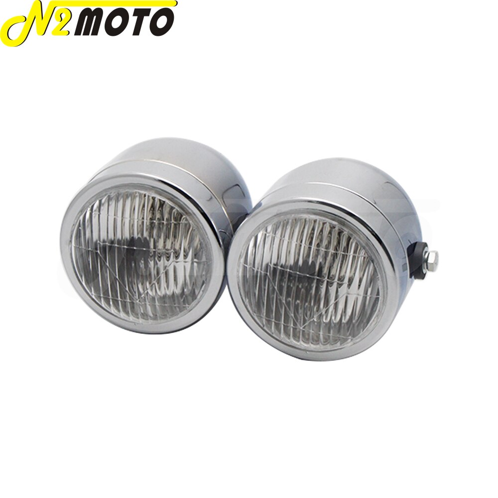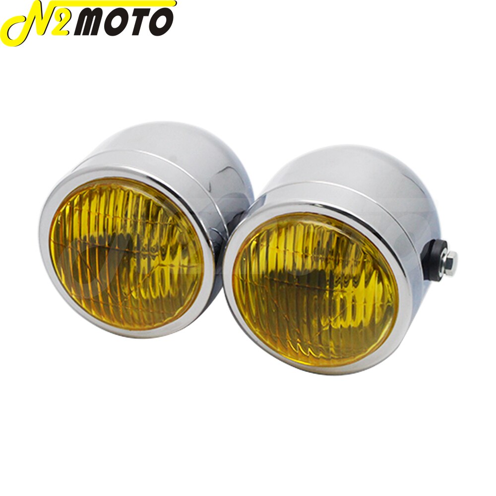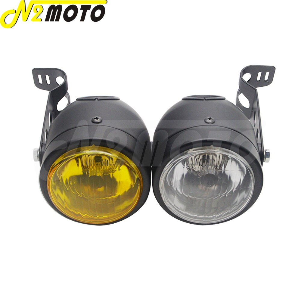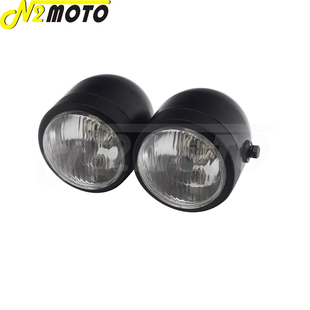 Chrome Amber Motorcycle Retro Twin Headlight Holder Fork Double Dual Head Lamp For Harley Dyna Bobber Chopper Cafe Racer Custom