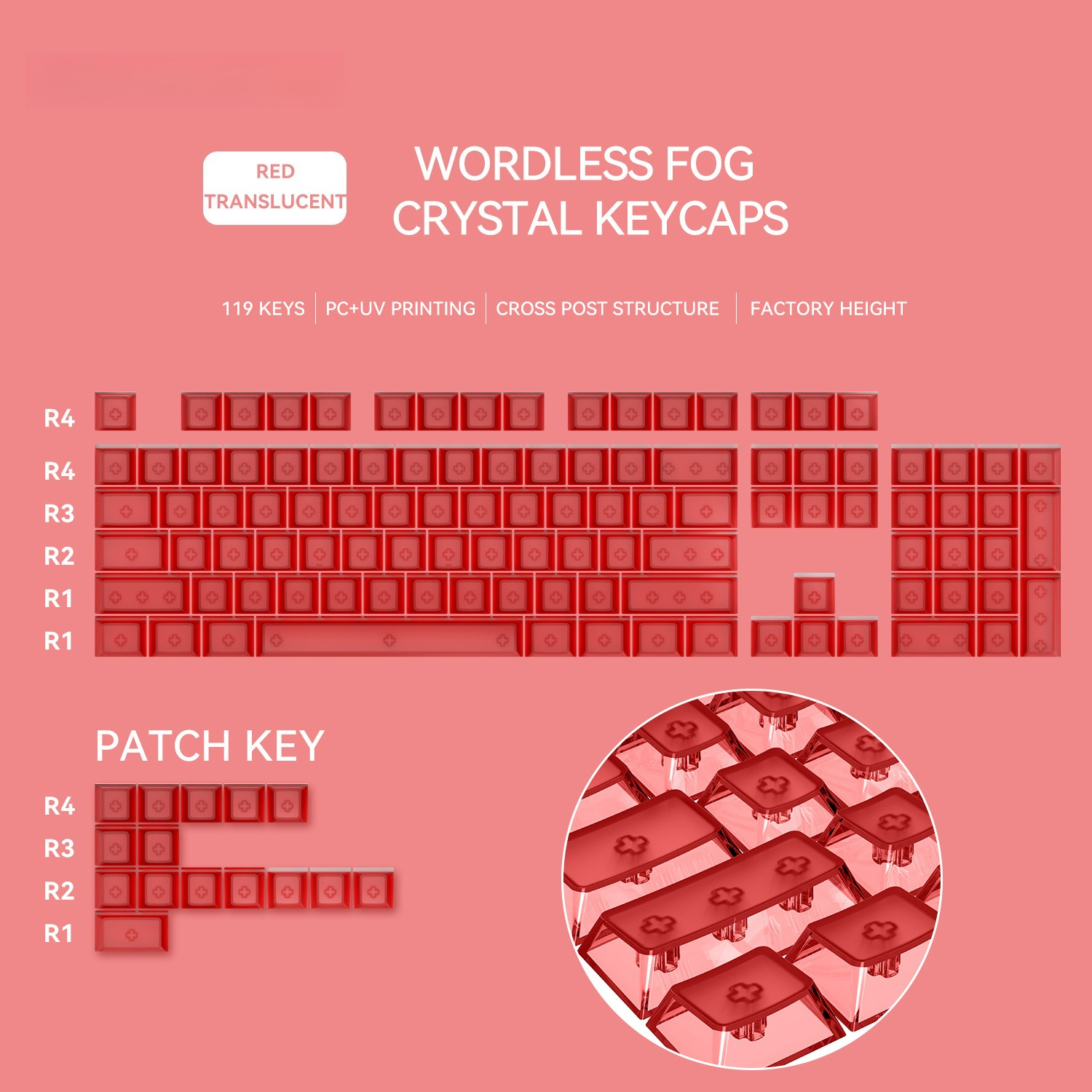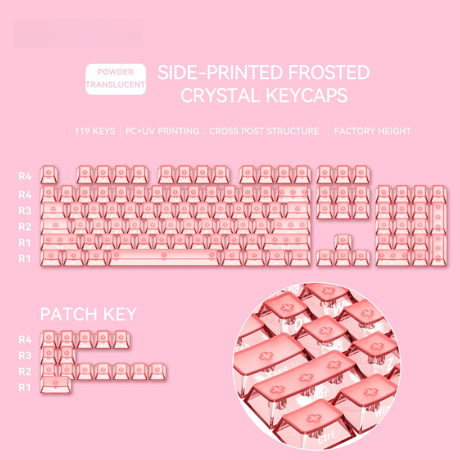 Front Matte Finish Keycaps Sides Translucent Cherry Profile PC Keycaps for Gaming Mechanical Keyboard Key Caps Custom Keyboard