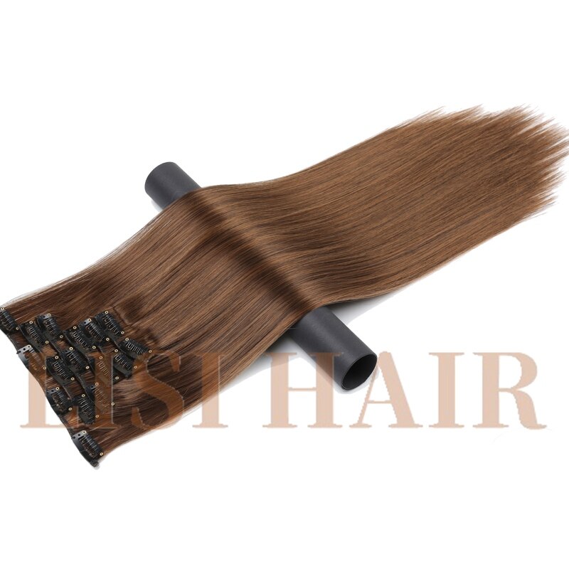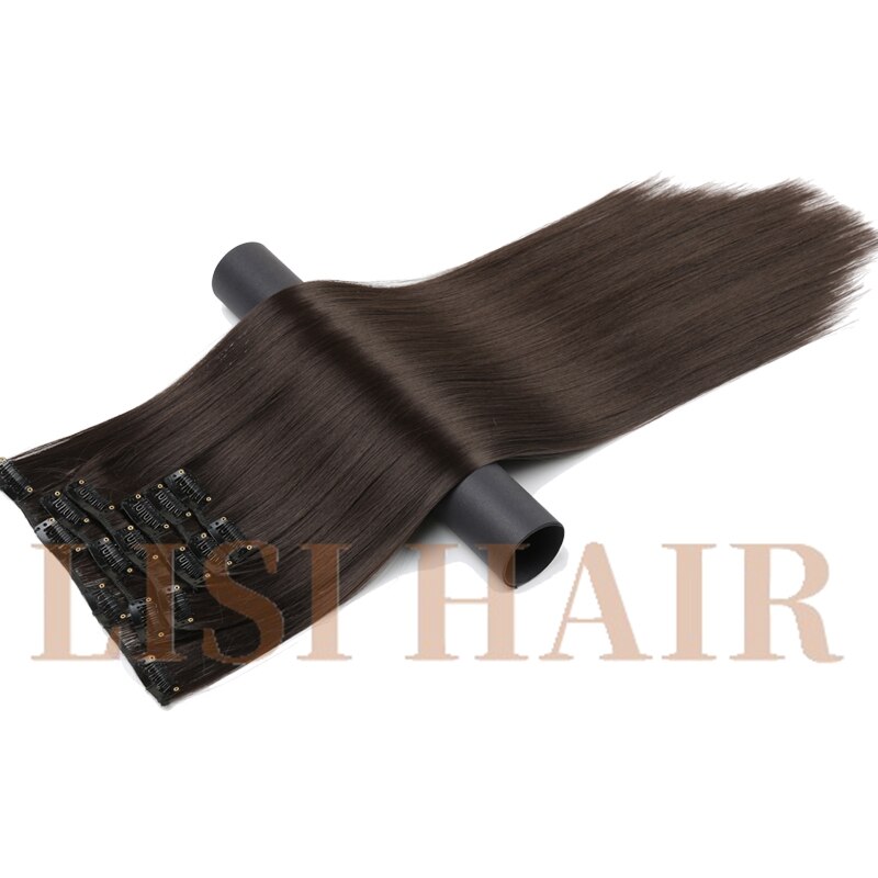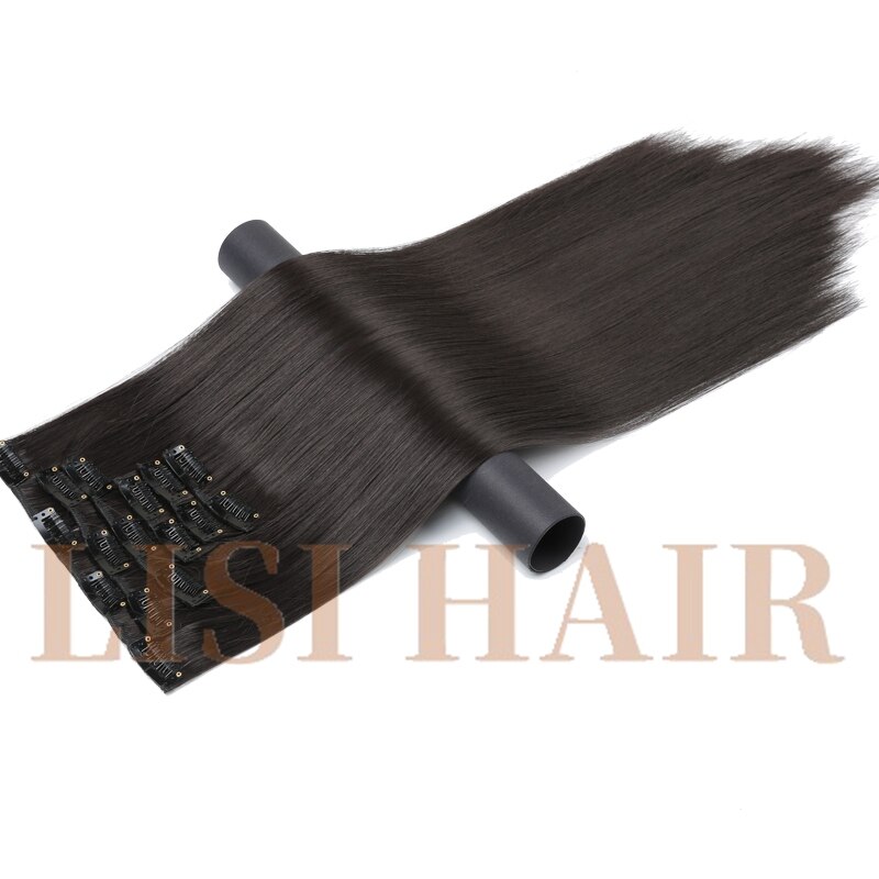 LISI HAIR 55cm Long 16 Clip in Hair Extension Straight Hairpiece Synthetic Hair For Women 140g High Temperature Fiber