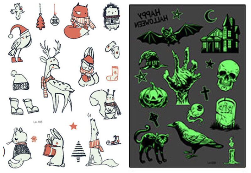 Luminous Stickers Decals Glow in the Dark decoration Fluorescent Cute smiley face stickers Christmas Halloween Luminous Sticker
