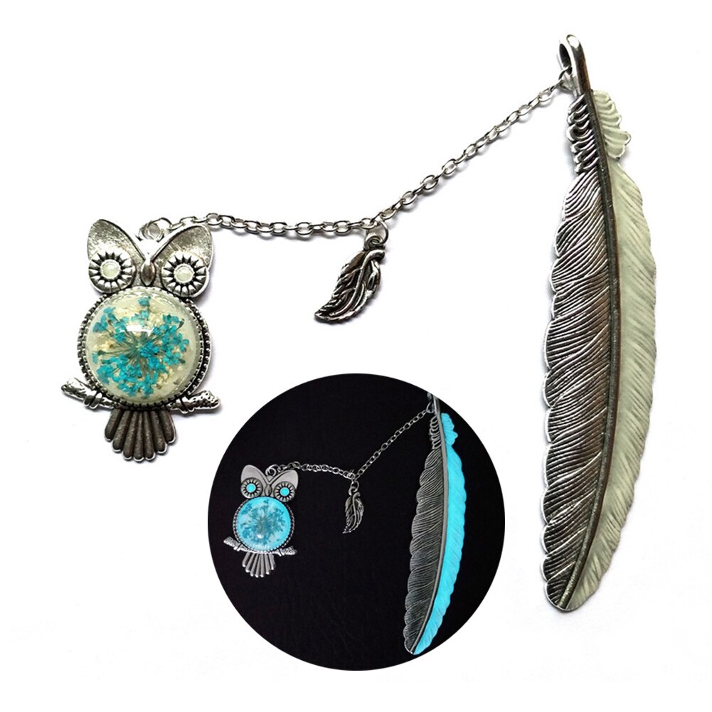Metal Bookmark Feather Crown Luminous Feather Owl Bookmark Glow In The Dark Label Read Maker Book Accessories