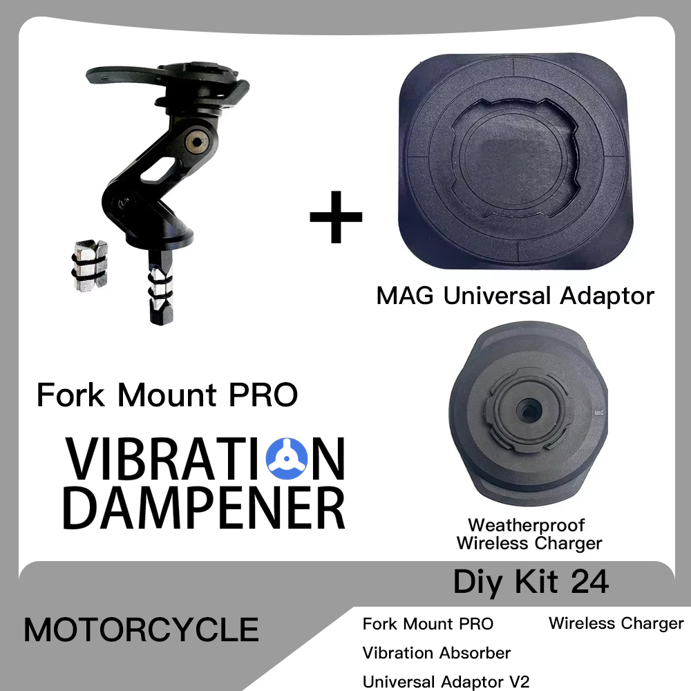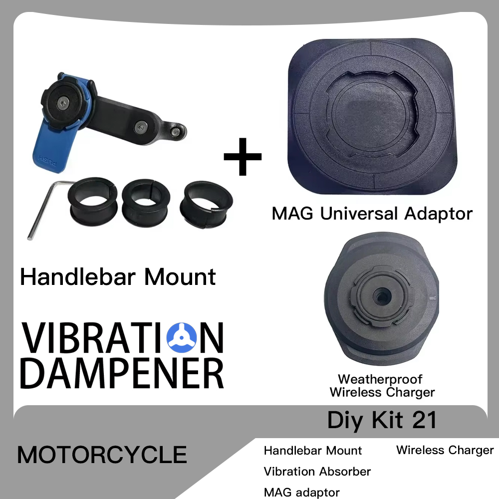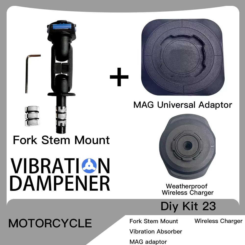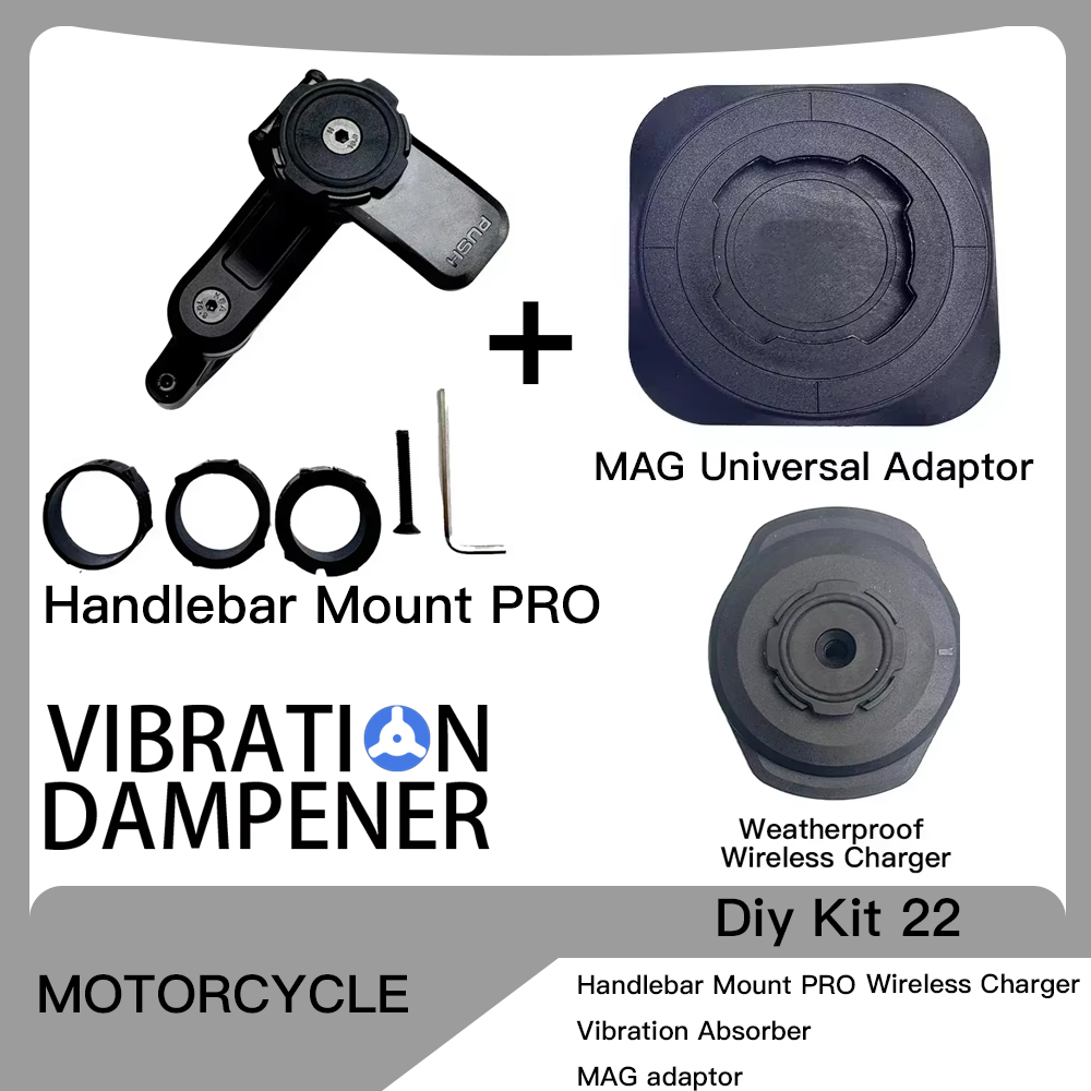 Motorcycle Handlebar Clamp Stem Fork Mount PRO Holder Phone Mount Vibration Dampener MAG Universal Adaptors Wireless Charger