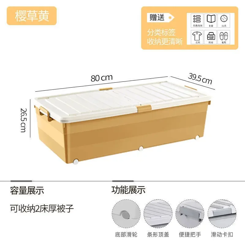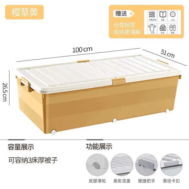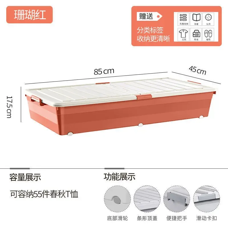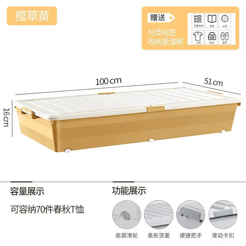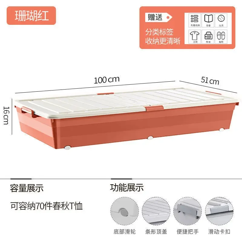 Multi-specification Foldable Plastic Storage Box with Wheels Under Bed - Large Capacity Bedroom Clothes and Toys Organizer