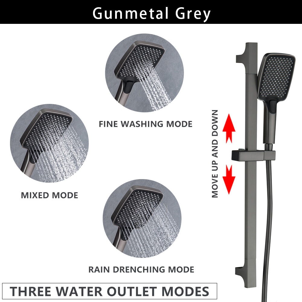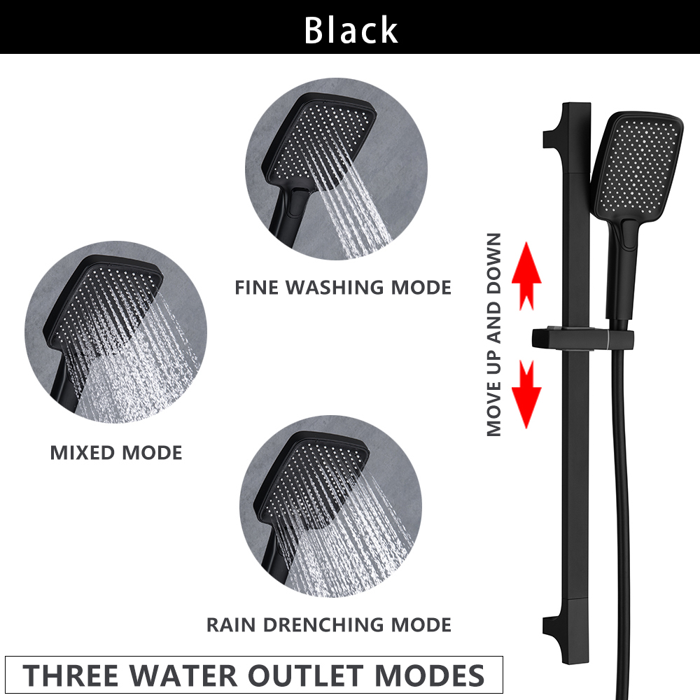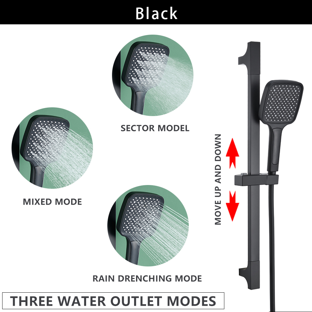 Wall Mounted Adjustable Slide Shower Bar Bathroom Shower Riser Sliding Bar Set with Hose and Shower Black Gold Minimalist Style